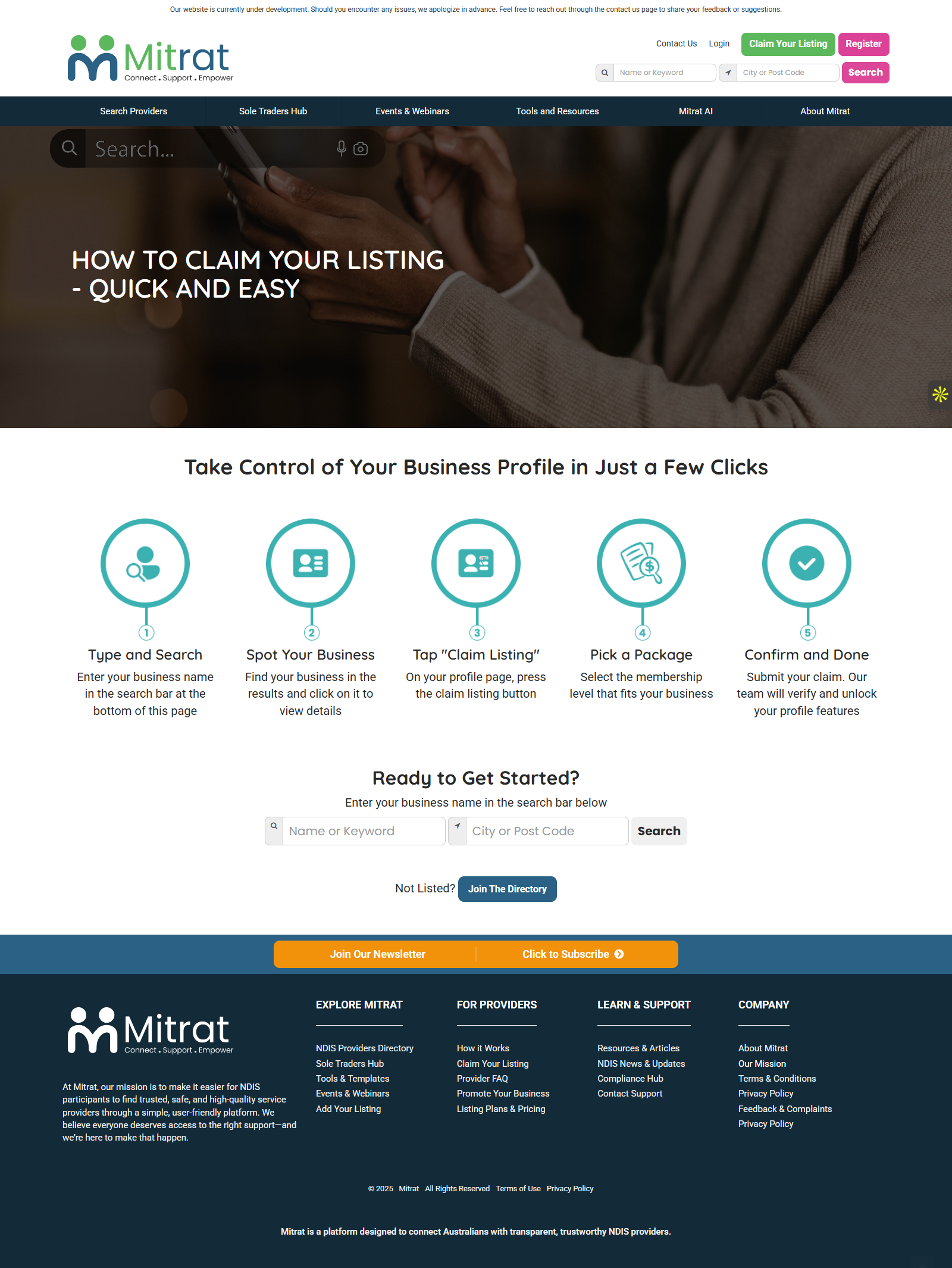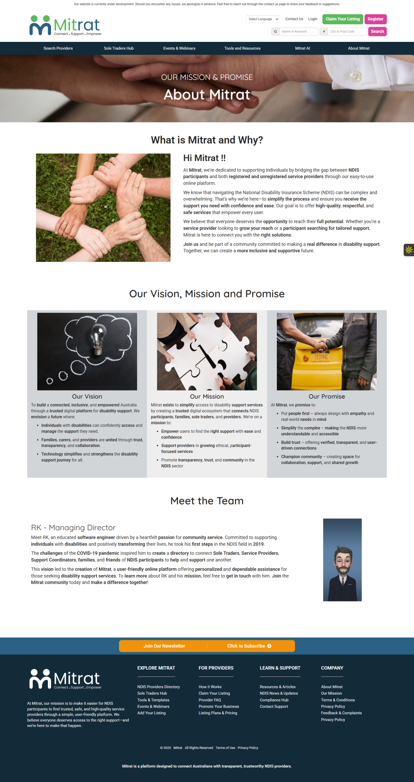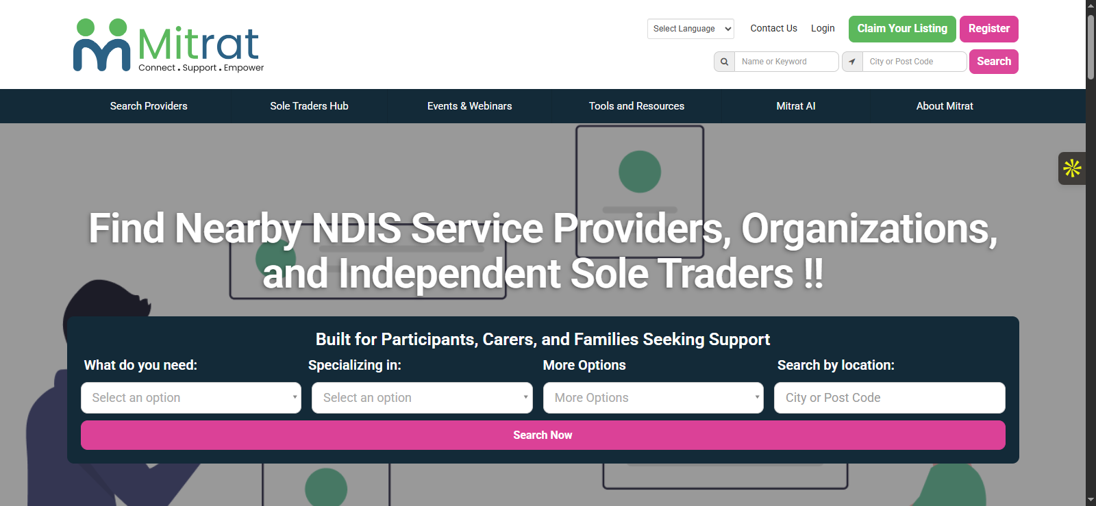 Mitrat is a comprehensive NDIS Provider Directory platform built on Brilliant Directories to connect NDIS participants, support coordinators, and service providers across Australia. The platform was architected as more than a directory—it functions as a scalable ecosystem combining verified listings, tiered memberships, lead generation, dashboards, email automation, and future-ready tools such as AI support and digital products.